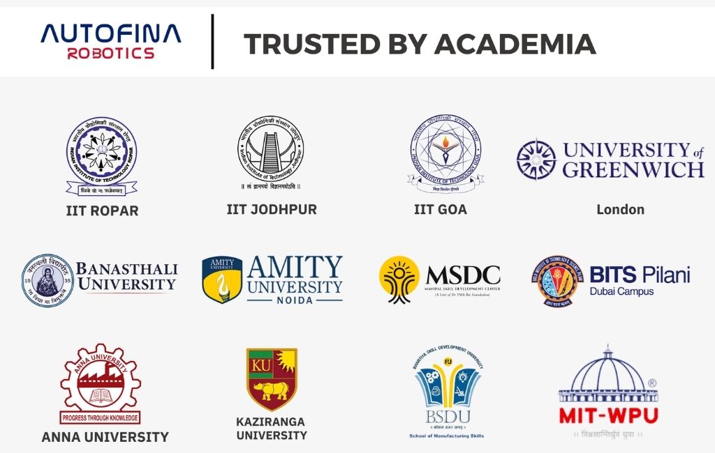 Autofina Robotics equips colleges with cutting-edge educational robots and turnkey “Industrial Robotics Lab Setup” programs that deliver true hands-on learning. Students gain practical skills in programming, integration, and maintenance, making them industry-ready for high-growth automation roles while institutions strengthen placement outcomes and industry partnerships.